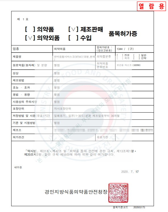 ÇѸ¶À½ Ȳ»ç ¸¶½ºÅ© KF94 ´ëÇü, Èò»ö