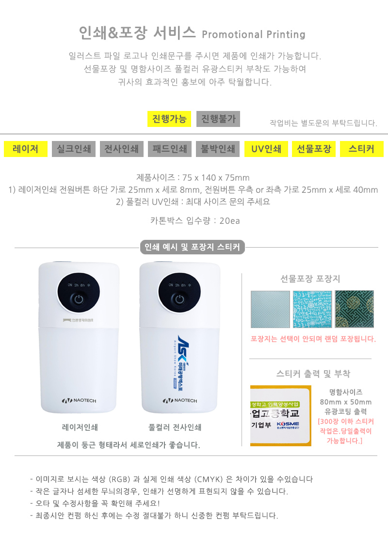¡¡ ¿¹ : 100°³(±âÁؼö·®)ÀÌ»ó ±¸¸Å½Ã »óǰ 1°³´ç Àμâºñ 200¿ø¾¿ Ãß°¡µÊ