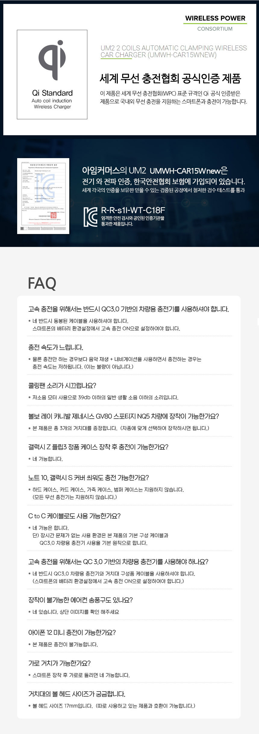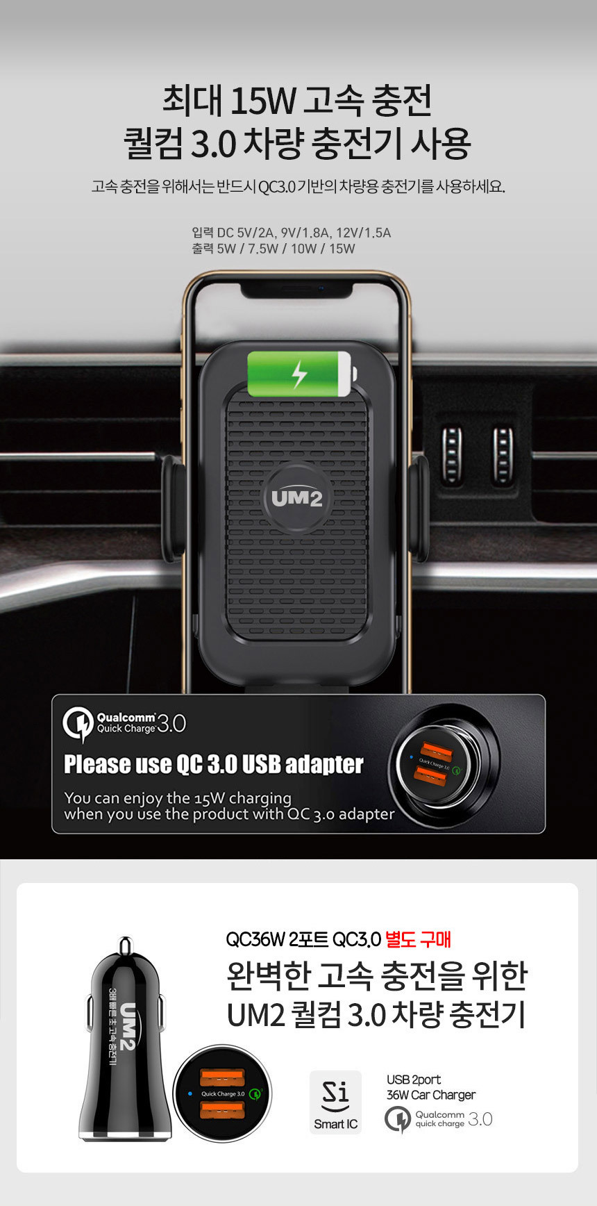 UM2 UMWH-CAR15W Â÷·®¿ë ÃæÀü±â ¹«¼± °ÅÄ¡´ë new
