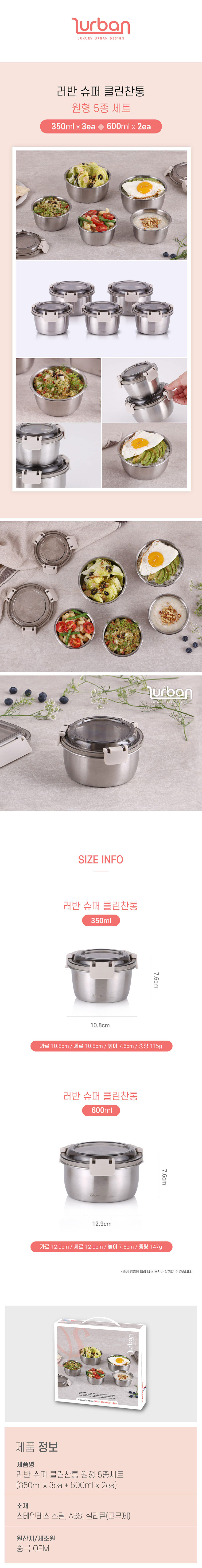 ¸ðµ¨¸í ½¬Á© ·¯¹Ý ½´ÆÛŬ¸°ÂùÅë ¿øÇü5Á¾¼¼Æ® (350ml*3EA+600ml*2EA)