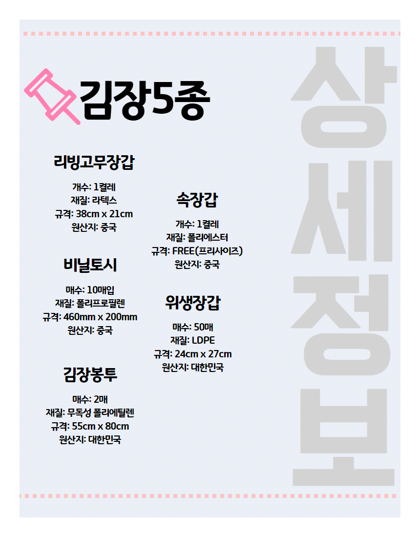 ±¸¼º ¸®ºù°í¹«Àå°© 1ÄÓ·¹, ¼ÓÀå°© 1ÄÓ·¹, ºñ´ÒÅä½Ã 10¸Å, ±èÀåºÀÅõ 2¸Å, À§»ýÀå°© 50¸Å Á¦Ç°±Ô°Ý »ó¼¼ÆäÀÌÁöÂüÁ¶