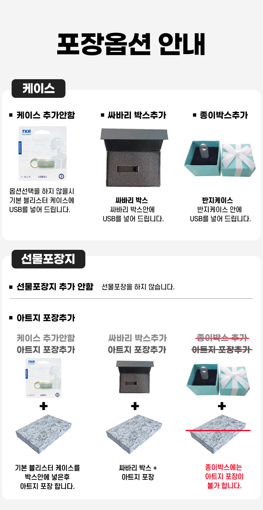 • ÆÐŰÁö, ¼±¹° »óÀÚ µî ¿É¼ÇÀ» Ãß°¡ÇÏ¿© ¹è¼Û ÈÄ ¹ÝǰµÈ »óǰÀÇ ¼±¹°»óÀÚ°¡ ÈѼյǾú°Å³ª µ¿ºÀÇÏÁö ¾ÊÀº °æ¿ì, ÇØ´ç ºñ¿ë °øÁ¦ ÈÄ È¯±ÞµÉ ¼ö ÀÖ½À´Ï´Ù.