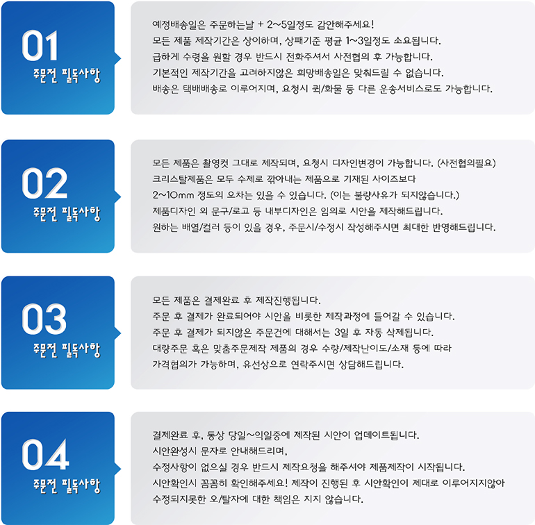 • ÁÖ¹® ½Åû ÈÄ ÇØ´ç ¹°Ç° ´ë±ÝÀ» ¼Û±ÝÇØ ÁÖ½Ã°í ¼Û±Ý È®ÀÎÀº ¹Ýµå½Ã À¯¼±À¸·Î È®ÀÎÇϽñ⠹ٶø´Ï´Ù. (ÁÖ¹® ÈÄ ¹ÌÀÔ±Ý, ¶Ç´Â ÀüÈ­»ó ¼­·Î È®ÀÎÀÌ ¾ÈµÉ °æ¿ì Á¦ÀÛÀÌ Áö¿¬µÇ´Â °æ¿ìµµ ÀÖÀ½)