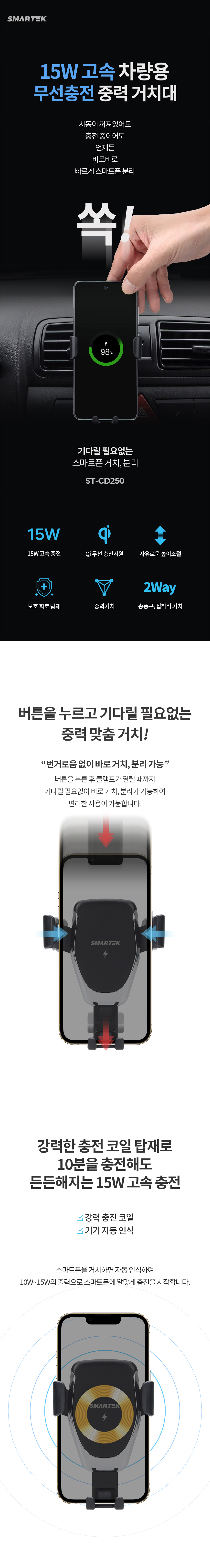 ½º¸¶ÅØ 15W Â÷·®¿ë °í¼Ó ¹«¼±ÃæÀü Áß·Â °ÅÄ¡´ë ST-CD250 |