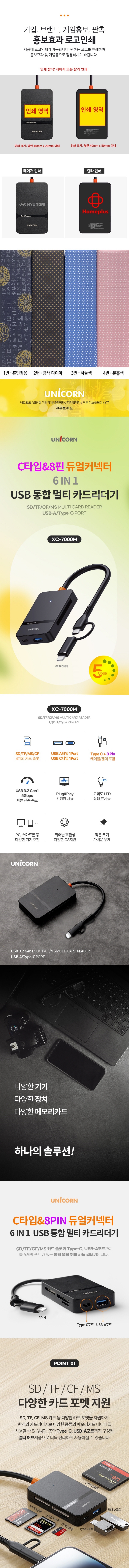 À¯´ÏÄÜ C+8ÇÉŸÀÔ USB3.2 Gen1 6in1 ¸ÖƼīµå¸®´õ±â µà¾óÄÁ³ØÅÍ XC-7000M